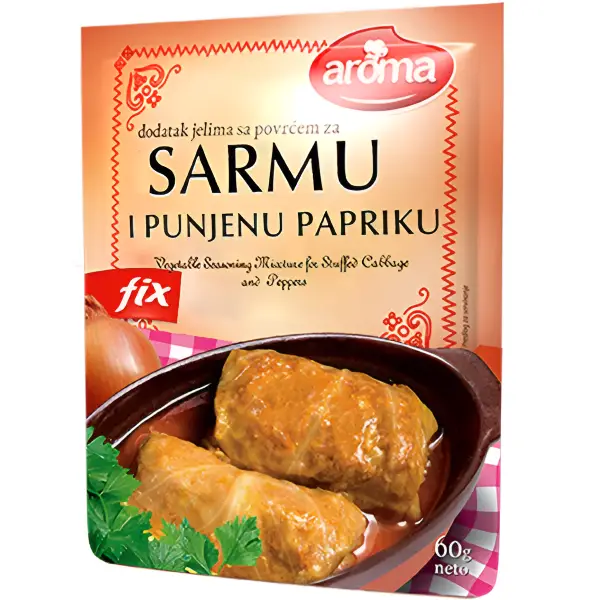 Aroma Fix Sarma Mix 60g combines a carefully balanced blend of herbs and spices to create the perfect seasoning for traditional sarma rolls. Additionally, this classic mix delivers the ideal combination of flavors, making it a favorite for home cooking or special family meals. Available at Global Imports & Exports – Wholesale European Food Distributors, Florida’s largest European food distributor. Finally, Aroma Products Distributor Florida & USA. Largest Distributor of European Foods.