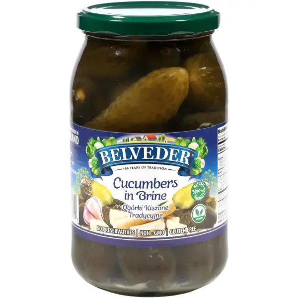 Classic European Pickle – A timeless staple enjoyed across generations. Additionally, Belveder Cucumbers in Brine.