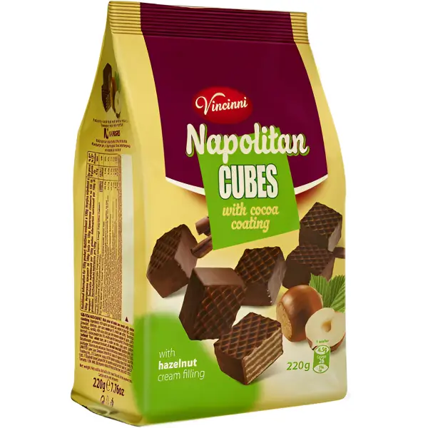 Vincinni Chocolate Cover Hazelnut Cubes 220g combine smooth, rich chocolate with a crunchy hazelnut filling for a deliciously indulgent treat. Additionally, these bite-sized cubes are perfect for snacking or sharing with friends.