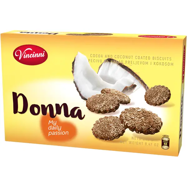 Vincinni Donna Cookies 240g combines crisp, golden cookies with a rich, flavorful taste for a deliciously satisfying treat. Additionally, Donna Cookies are perfect for snacking or sharing.