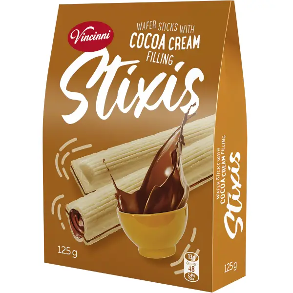 Vincinni Stixis Cocoa Cream Wafer 125g combines crisp, light wafer layers with smooth cocoa cream for a perfectly balanced treat. Additionally, this delightful snack delivers the ideal harmony of crunch and rich cocoa flavor, making it a favorite for wafer and chocolate lovers alike. Available at Global Imports & Exports – Wholesale European Food Distributors, Florida’s largest European food distributor. Finally, Vincinni Products Distributor in Florida & USA. Largest Distributor of European Foods.